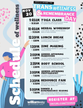 Join us for a FREE full day of reflection, healing, and community connection. The day begins with registration and a welcome address, followed by opportunities for movement, artistic expression, learning, and honoring the lives of those lost in the trans community. Throughout the day, there will also be a grocery distribution and resource fair, with the event ending in our annual evening dinner reception and remembrance reading. All are welcome to come together for this meaningful observance.