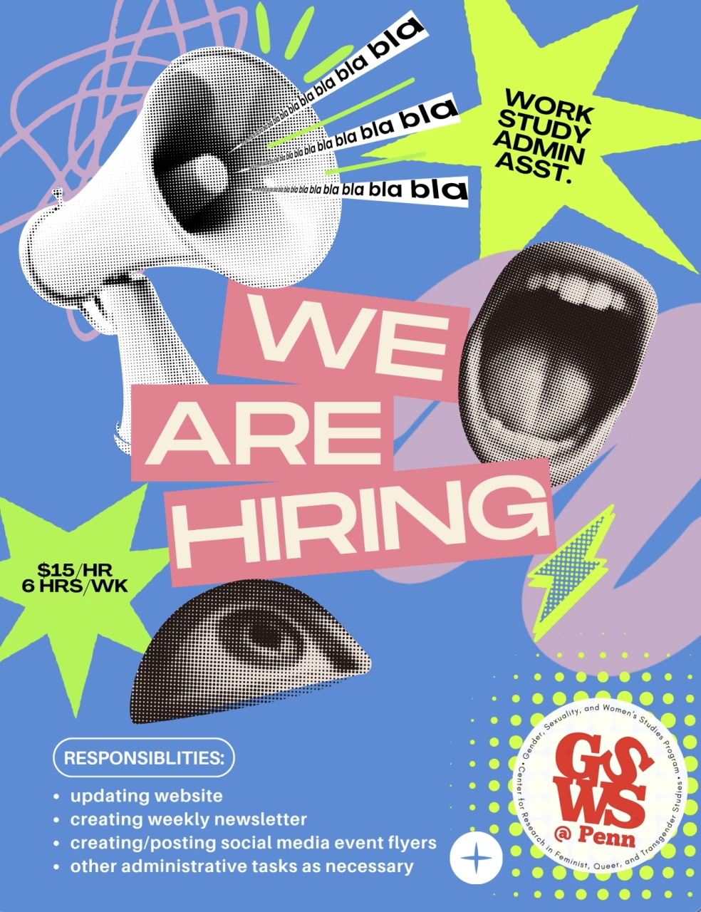 GSWS/FQT are seeking a detail-oriented and motivated work-study student to help with administrative tasks.